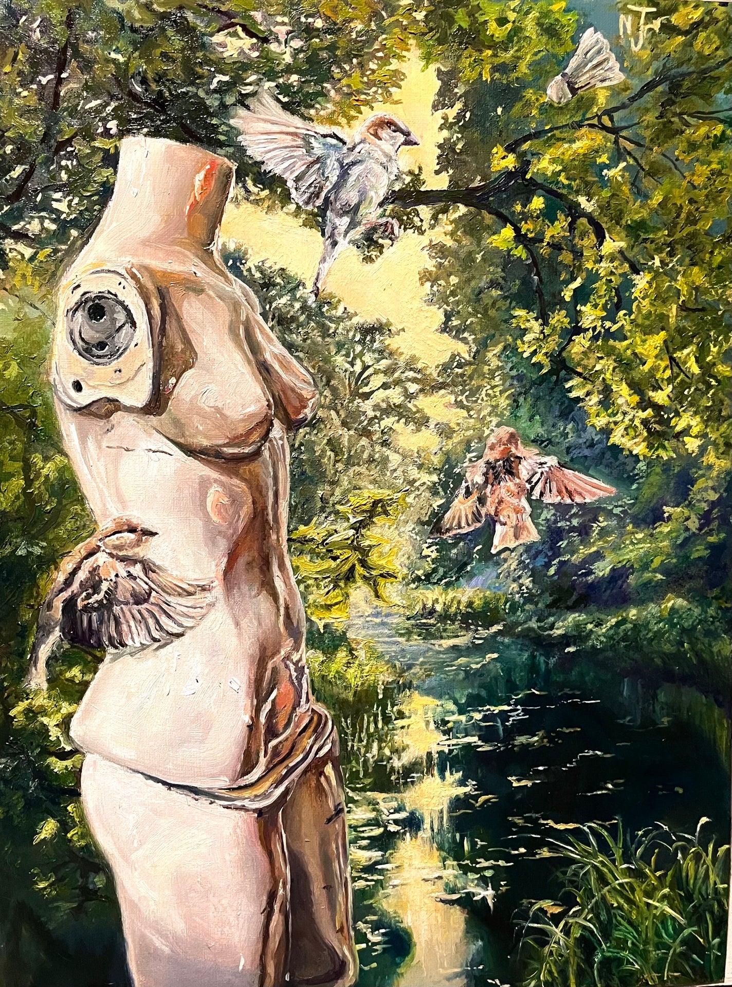 Any Ornithology print you choose will evoke feelings of wonder and curiosity due to the surreal nature of the artwork. Whether you choose a 6"8" or a 12"16" print, framed or unframed you be adding unique character to your home and you will have a piece of art that garners questions in both yourself and others. The color scheme with vibrant greens and subdued yellows will complement nearly any color scheme already existing in your home, and if mannequins aren't really your thing it would make a perfect gift for any art lover wanting to adorn their home with art created by a current and new artist.